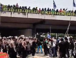 Salah satu pengunjuk rasa bahkan mengibarkan bendera Merah Putih dan memalang motor polisi hingga terjatuh. Kontak kunci motor pun diambil massa aksi.